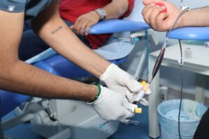 وقدم للتبرع بالدم 22 متبرعا 20 منهم من الرجال و2 من النساء، حيث تم رفض حالة واحدة من الرجال ليصبح مجموع المتبرعين الرجال 19 ومجموع المتبرعين المقبولين 21 متبرعا ومتبرعة.