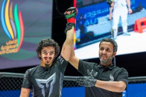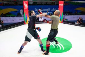 حجز 6 لاعبين مقاعدهم في نهائيات 3 أوزان ببطولة فنون القتال المختلطة، ضمن دورة الألعاب السعودية (الثالثة) 2024، خلال المنافسات التي جرت يوم امي الأربعاء في بوليفارد 4.