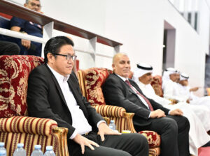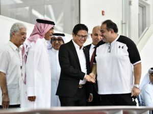 واستقبال رئيس الاتحاد الآسيوي كل من الشيخ علي بن محمد آل خليفة رئيس الاتحادين العربي والبحريني و الأمين العام للاتحادين العربي والبحريني فراس الحلواجي.