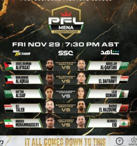 تعتبر بطولة PFL MENA أو دوري المقاتلين المحترفين لمنطقة الشرق الأوسط وشمال أفريقيا في نسختها الأولى خطوة رائدة لتمكين الرياضيين في المنطقة للمنافسة وتطوير مواهبهم من خلال نزالات الموسم العالمي للرابطة. وتشمل البطولة نزالات حاسمة لتحديد من هم الأبطال الذين سيحصلون على الحزام في منطقة الشرق الأوسط وشمال أفريقيا لكل من أوزان الريشة، والوزن الوسط، والخفيف، والوزن البانتام.