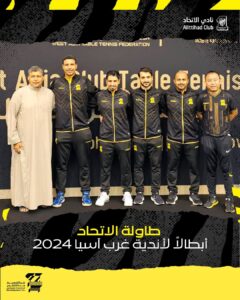 تغلب فريق كرة الطاولة بنادي الاتحاد السعودي اليوم السبت الموافق 2024/11/16 على نظيره فريق البحرين البحريني بنتيجة 3/1 في نهائي غرب اسيا والمقامة في الأراضي القطرية وتحديداً ملعب نادي قطر القطري