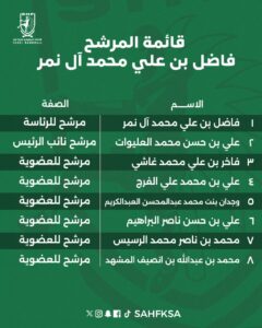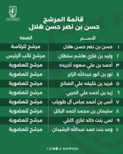 وتقدم للترشح قائمة الاستاذ فاضل النمر، والأستاذ حسن هلال، وتم استيفائها كافة شروط الترشح.