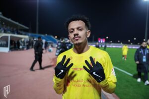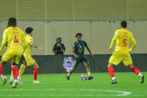 سجل ثلاثية القادسية الجناح المكسيكي جوليان كينيويس في الدقائق (9 ، 71) و الجابوني بير إيمريك أوباميانج (49).