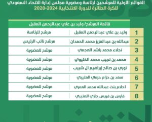 وفي ظل هذه الإنجازات التي حققتها الكرة الطائرة السعودية تتنافس حاليا (3) قوائم على رئاسة الاتحاد السعودي للكرة الطائرة ،وجاءت القوائم الأولية للمرشحين للرئاسة وعضوية مجلس إدارة الاتحاد على النحو التالي :