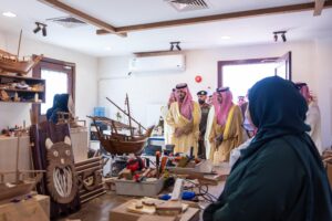 كما زار سموه بيت الحرفيين الذي تشرف عليه هيئة التراث في المنطقة الشرقية، في إطار مبادرة إحياء الحرف اليدوية الأصيلة في المحافظة، واطلع على مشاركات 45 شابًا وشابة في البرنامج التدريبي والتطويري الذي يهدف إلى تمكين الشباب والشابات من تطوير مهاراتهم في مجال الحرف اليدوية، وتعزيز دورها في الحفاظ على التراث الوطني.