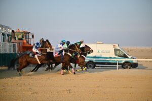 وفي الشوط الثاني كأس أبطال الميادين التمهيدي للجياد المهجنة الأصيلة كأس فئة ” ج ” أفراس إنتاج محلي 4 سنوات مفتوح، وجائزته ١٢٠٠٠ ريال فاز بالمركز الأول الجواد ( أنا الصوعيه )، للمالك والمدرب دواس الدوسري بقيادة الخيال عبدالعزيز الدوسري سلم كأس التأهيل الأستاذ بدر بن ناصر الشمري عضو مجلس إدارة ميدان فروسية الجبيل.