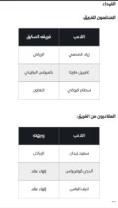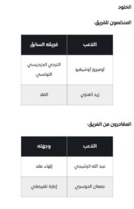 كما انهاء العلاقة التعاقدية مع فهد الحمد وانتقال علي الاسمري الى نيوم واعارة ياسين الزبيدي الى فريق الاخدود