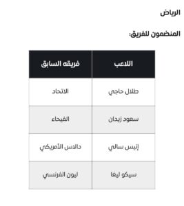 وايضاً وافق على اعارة طلال حاجي الى الرياض احمد بامسعود للاتفاق احمد الغامدي الى نيوم