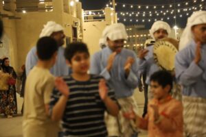 أشعل المسحراتي ومسرح الطفل، الأجواء في الليلة الثانية من فعاليات ”قرقيعان الرامس“ التراثية، التي يشهدها مشروع الرامس بوسط العوامية.