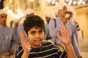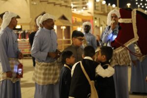 وبصوته الجهوري ونداءاته المميزة، أعاد المسحراتي محمد المقيبل ذكريات الزمن الجميل إلى أذهان الكبار، بينما تفاعل الصغار بحماس مع إيقاعاته وكلماته، مُرددين معه العبارات التراثية المأثورة.