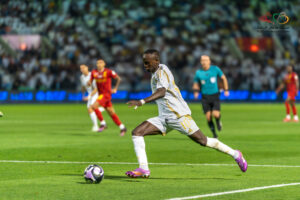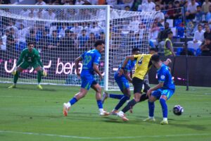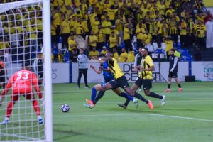 وفي غفلة من دفاعات القادسيه وتمريرة من خلف الدفاع واجه الدولي السنغالي ساديو ماني مرمى البلجيكي الدولي كاستيلس ليسجل هدف التعادل للعالمي عند الدقيقة (٨٤) وبعد (٣) دقائق فقط يسجل الدولي الغابوني بيير اوباميانغ هدف الفوز وتحديداً عند الدقيقة (٨٧) لتنتهي المواجهه بهذي النتيجة هدفين مقابل هدف.