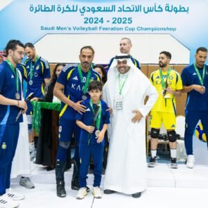 في المقابل، توّج فريق النصر بالميداليات الفضية بعد حلوله وصيفاً، وقام بالتتويج عضوا مجلس الإدارة محمد الفقيه وباسم منقل.