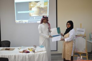 وفي ختام البرنامج قدم المكتب شهادة شكر وتقدير للمدربة مرحباً بها وشاكرا جهودها وتعاونها في تقديم هذه الورشة الحرفية لمستفيدات الضمان الاجتماعي