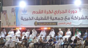برعاية كريمة من رئيس بلدية محافظة القطيف وحضور وكيل رئيس البلدية للخدمات المهندس علي بن عباس المطرود ومدير الإدارة العامة للأمن والسلامة الإستاذ زكي بن اسماعيل الهاشم وبعض الشخصيات الرياضية والاجتماعية بالمحافظة وجماهير غفيرة ملأت أرض الملعب، المطرود يسلم فريق قاصد خير كأس بطولة جراري (22).