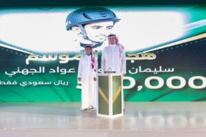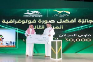 كرم صاحب السمو الأمير فهد بن جلوي بن عبدالعزيز بن مساعد، نائب رئيس اللجنة الأولمبية والبارالمبية السعودية ورئيس الاتحاد السعودي للهجن الفائزين بجوائز حفل “جائزة ذروة سنام 2025″، والذي أقيم اليوم على ميدان الجنادرية بمدينة الرياض وسط حضور عدد من ملاك الهجن والهجانة وعدد من الشخصيات الرياضية.