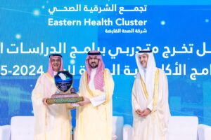 وأكد رئيس المجلس التأسيسي للقطاع الشرقي الصحي الأستاذ عصام المهيدب، في كلمته خلال الحفل، أن هذه المناسبة تُجسد ثمرة استثمار وطني في التعليم والتدريب الصحي وقال ” نحتفي اليوم بتتويج رحلة مفعمة بالعلم والنجاح لأكثر من 600 خريج وخريجة، نفخر بإنجازاتهم ودورهم المحوري في تحسين الرعاية الصحية بالمنطقة،ونؤمن يقينًا أن التعليم والتطوير المهني هما ركيزتان أساسيتان في تطوير القطاع الصحي وتحقيق مستهدفات برنامج التحول الوطني”.