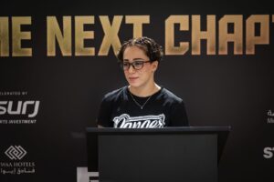 من جانبها، أبدت المقاتلة السعودية هتان السيف جاهزيتها الكاملة للنزال المقبل، مؤكدة أنّ تمثيل الوطن يمنحها دافعاً لا حدود له وقالت:”كل نزال أخوضه هو فرصة جديدة لرفع اسم المملكة، وأطمح لأن أواصل سلسلة انتصاراتي بثقة وقوة، لا أرى أنني أفضل من خصمي بالسجل الاحترافي، وأقول لها: كل التوفيق لنا جميعاً في النزال.”