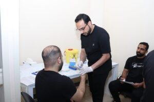 وقد بلغ إجمالي المتقدمين للتبرع بالدم 77 متقدمًا ومتقدمة، منهم 74 رجلًا و3 نساء، وبعد إجراء الفحوص الطبية الأولية، تم استبعاد 4 متبرعين من الرجال، ليُعتمد في النهاية 73 متبرعًا مؤهلًا، بواقع 70 رجلًا و3 نساء.