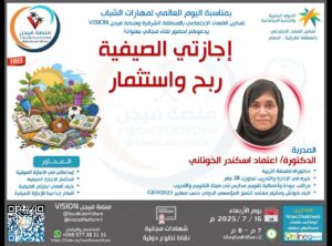 تزامناً مع اليوم العالمي لمهارات الشباب اختتم المكتب الرئيسي للضمان الاجتماعي بالمنطقة الشرقية بالدمام وبالتعاون مع منصة فيجن مساء يوم الاربعاء الموافق : 16 يوليو 2025 عبر برنامج المنصة الافتراضية زووم لقاء توعوي تثقيفي بعنوان / اجازتي الصيفية ربح واستثمار تقديم الدكتوره أ . اعتماد الخوتاني وذلك تحت الشعار الشباب هم القوة المحركة للتغيير بحضور 100 مشارك ويهدف اللقاء الى توعية المشاركين بكيفية استثمار اوقاتهم في الاجازة الصيفية بأفكار ابداعية حيث طرحت المدربة 24 هدفاً لاستثمار الاجازه الصيفية يتيح للمشارك حرية اختيار الهدف المناسب له كما تضمن عدد من المقاطع التوعوية عن الصحة النفسية والاجتماعية ويأتي هذا اللقاء تعزيزا للتعاون المشترك بين مكتب ضمان الدمام ومنصة فيجن والذي يهدف الى تقديم برامج ولقاءات تسهم في تحسين امكانيات مستفيدي الضمان وتطوير مهارتهم وخبراتهم.