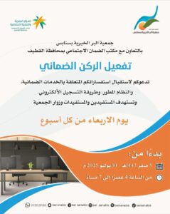 أطلقت جمعية البر الخيرية بسنابس، بالتعاون مع مكتب الضمان الاجتماعي بمحافظة القطيف، مبادرة نوعية تحت عنوان “الركن الضماني”، وذلك ضمن جهودها المستمرة لتيسير الخدمات الاجتماعية وتعزيز الوعي المجتمعي بأنظمة الضمان الاجتماعي المطور.