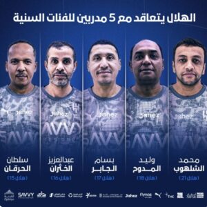 أنهت شركة نادي الهلال إجراءات التعاقد مع مدربي الفئات السنية لفرق كرة القدم بالنادي، حيث سيقود الدفة الفنية للفئات كلٌّ من: