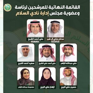 اللجنة العامة لانتخابات الأندية تعلن القائمة النهائية للمرشحين لرئاسة وعضوية مجلس إدارة نادي السلام الرياضي