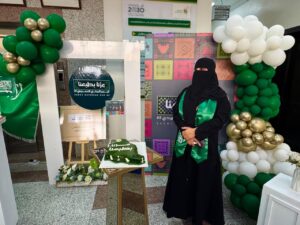 وتزينت أرجاء المكتب وأسواره بالأعلام الخضراء، في أجواء وطنية غمرت الحضور بالفخر والاعتزاز، حيث اشتمل الحفل على باقة من الأركان الخاصة بالأسر المنتجة والفعاليات المتنوعة، كأعمال الخوصيات “أم كاظم”،مسك الكوثر للطباعة الحرارية والتوزيعات ، زهرة الأمل للتاوة و الحلويات ،
