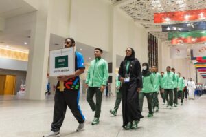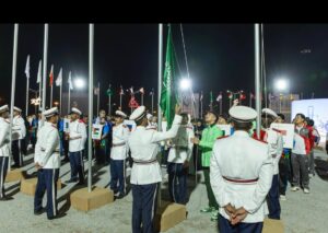 رفع العلم السعودي في قرية الرياضيين