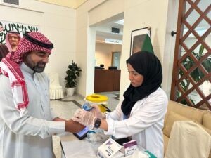 واطلع السيف خلال جولته على آلية العمل في أركان الفحص والتوعية، واطلع على جهود الكوادر الصحية في التوعية بأهمية الكشف المبكر عن السكري والسمنة، والإرشادات المرتبطة بالحفاظ على نمط حياة صحي ومتوازن، مشيدًا بما شاهده من تنظيم وتفاعل ميداني يجسد رسالة الجمعية في نشر ثقافة الوقاية والتوعية المجتمعية.
