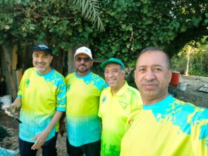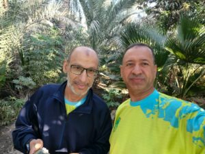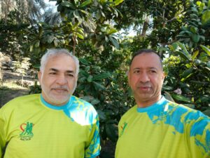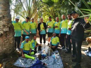 وبعد الانتهاء من فعالية المشي تقريبا أكثر من 5 كيلو تجمع الفريق في مزرعة الحاج ابوحسين المادح لتناول وجبة الفطور الخفيفه والشاي والقهوة ، تحت أجواء وطبيعة المزرعة الجميلة الخضراء.