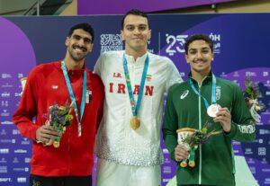 وأضاف لاعب المنتخب السعودي للسباحة، زيد السراج، البرونزية السعودية السابعة في منافسات اليوم، بحلوله ثالثاً في نهائي سباق 50م حرة بزمن 22.57 ثانية.