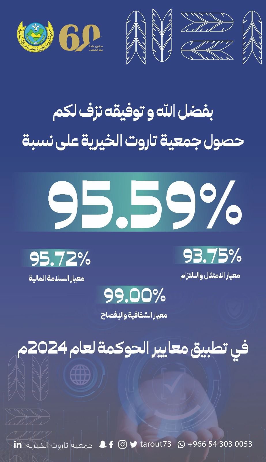 حققت جمعية تاروت الخيرية للخدمات الاجتماعية نسبة 95.59% في تقرير الحوكمة لعام 2024م، الصادر عن المركز الوطني لتنمية القطاع غير الربحي، في إنجاز يعكس التزام الجمعية بتطبيق معايير الحوكمة والشفافية، وتعزيز كفاءة الأداء المؤسسي.