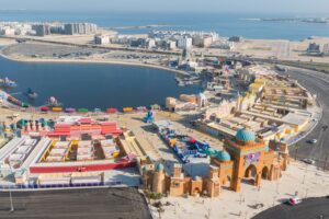 وبيّن أن مشروع “المدينة العالمية” يتميز بطابع ثقافي وترفيهي يجمع بين حضارات دول العالم في موقع واحد، من خلال أجنحة دولية تعكس هوية كل دولة في العمارة والمأكولات والمنتجات التراثية، بما يتيح للزوار تجربة ثقافية متكاملة تناسب مختلف الفئات العمرية. ويمتد المشروع على مساحة إجمالية تتجاوز 650 ألف متر مربع، فيما أُقيمت المرحلة الأولى على مساحة تقارب 250 ألف متر مربع، وجرى الانتهاء من تنفيذ 15 جناحًا دوليًا تمثل دولًا من الخليج العربي وآسيا وأوروبا وأفريقيا، ليصل إجمالي الدول المشاركة إلى 16 دولة موزعة على مناطق تعكس ثقافاتها المتنوعة.