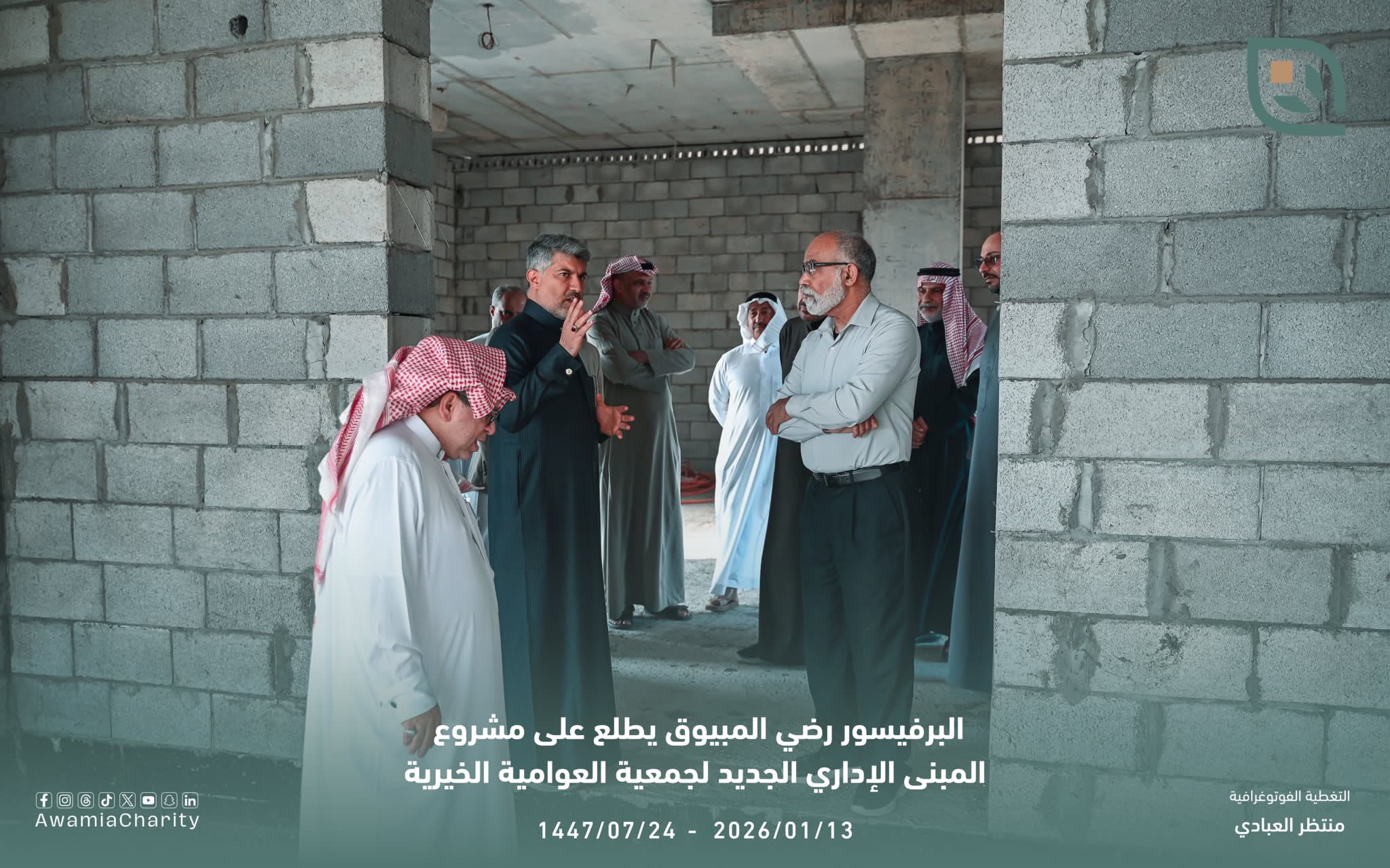 وأعرب البرفيسور الدكتور رضي بن حسن المبيوق عن بالغ إعجابه وسروره بما شاهده خلال الجولة، مشيرًا إلى أن المشروع أدخل البهجة إلى نفسه لما اتسم به من دقة في التصميم، وجودة في التنفيذ، وحسن اختيار المواد الإنشائية. وأشاد بما لمسه من عناية بالتفاصيل، ورؤية مستقبلية واعية تعكس وجود إدارة متابعة ومدركة لأهمية التخطيط بعيد المدى، ومراعية لاحتياجات أهالي بلدة العوامية لسنوات طويلة قادمة، مؤكدًا أن هذا النوع من المشاريع يُعد نموذجًا يُحتذى به في العمل الخيري المؤسسي القائم على التخطيط والاستدامة.