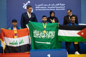 رفع فريق السعودية المشارك في دورة ألعاب غرب اسيا البارالمبية الخامسة بمسقط، الرصيد السعودي من الميداليات إلى 45 ميدالية متنوعة (20 ذهبية، 17 فضية، 8 برونزية)؛ عقب تحقيق الريشة الطائرة وألعاب القوى 24 ميدالية (11 ذهبة، 8 فضية، 5 برونزية) في منافسات اليوم الأربعاء في مجمع السلطان قابوس بمسقط.