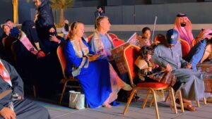 كما تخلل الحفل تقديم باقة من الأغاني الوطنية الخاصة بيوم التأسيس، التي تفاعل معها الجمهور بحماس كبير، مرددين كلماتها ومعبّرين عن اعتزازهم بتاريخ المملكة العريق وإرثها الممتد لثلاثة قرون.