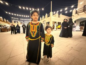 وتحولت ساحات مشروع الرامس إلى بانوراما وطنية حية، حيث توشح آلاف الأطفال والعائلات بالأزياء التراثية، مجسدين لوحة فنية تعكس عمق الانتماء الوطني والارتباط بالجذور.