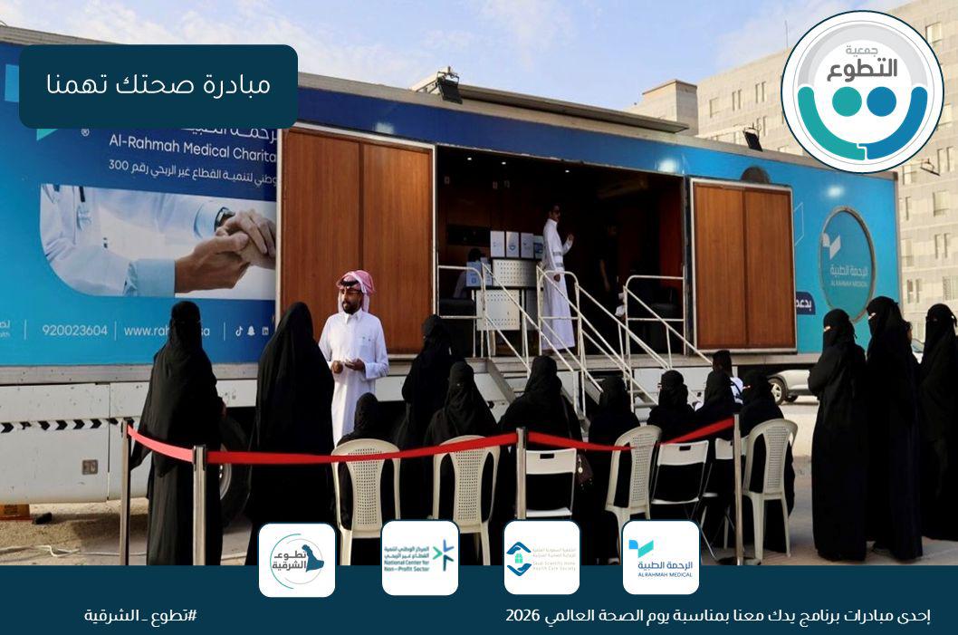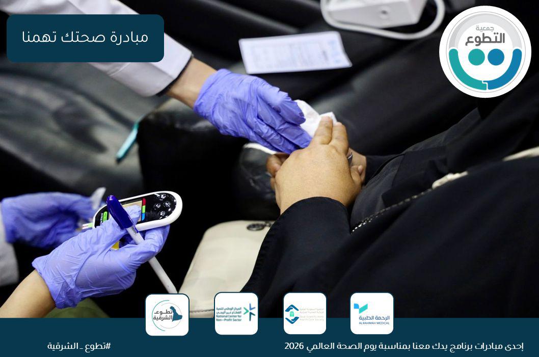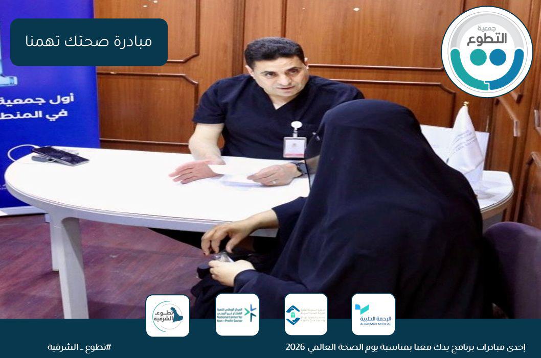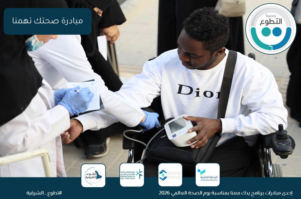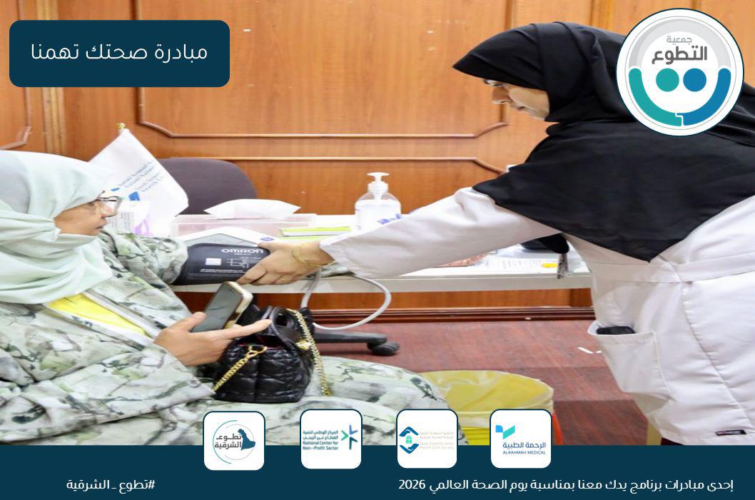 بالتزامن مع اليوم العالمي للصحة، وضمن جهود نشر الوعي حول الصحة الوقائية المجتمعية وتعزيز الصحة العامة لدى الفرد والأسرة، نفذت جمعية التطوع ضمن مبادرة تطوع الشرقية برنامجاً بعنوان “صحتك تهمنا” ، يوم الثلاثاء ١٩ شوال ١٤٤٧هـ وذلك بالشراكة مع جمعية الرحمة الطبية الخيرية والجمعية السعودية العلمية للرعاية الصحية المنزلية – فرع الدمام.