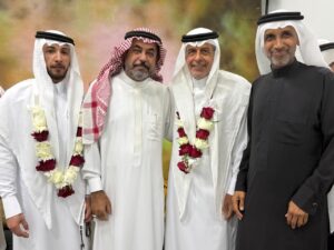 أسرة صحيفة فرسان الرياضة، التي تشرفت بمشاركة هذه المناسبة المباركة، ترفع أسمى آيات التهاني والتبريكات للعائلتين الكريمتين، متمنين للعريسين دوام التوفيق والسعادة في حياتهما القادمة.