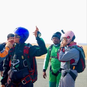 الكابتن رزان العجمي التي بدأت مشوارها الرياضي كمتسلّقة صخور إلى أن قررت خوض دورة تدريبية خاصة برياضة القفز المظلي من أجل الحصول على رخصة رسميّة تتيح لها المشاركة في التدريبات والمناسبات الرسمية ضمن المملكة العربية السعودية.
