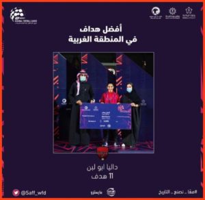 تعشق كرة القدم … لعبت في البداية كرة القدم للصالات استفادت منها بتطوير مهاراتها … حاصلة على بكالوريوس تمريض وتعمل لمساعدة المرضي وفي وقت الفراغ تمارس هوايتها كرة القدم وتطمح أن تكون لاعبة محترفة.. تشجع الاتحاد وليفربول … بين العارضات الثلاثة وحبها للتهديف حوارنا الممتع مع اللاعبة داليا أبو لبن …
