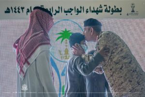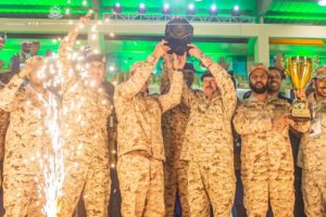 توج سمو اللواء الركن نايف بن ماجد بن سعود رئيس الجهاز العسكري المكلف بوزارة الحرس الوطني فريق القطاع الشرقي بالدرع العام في ختام بطولة شهداء الواجب الرابعة والتي اقيمت بمدينة شهداء الحرس الوطني الرياضية بالرياض .