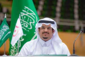 وقال سموه ” إن عراب وقائد هذه الانجازات التي وصلت للعالمية هو سيدي سمو ولي العهد – حفظه الله – حتى أصبحت المملكة لها ريادتها الأولى عالمياً على مستويات التنظيم والاستضافات باختلاف الرياضات والألعاب ” .