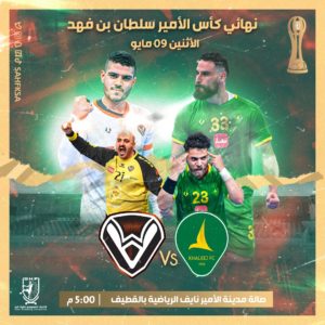 تتجه أنظار متابعي ومحبي كرة اليد يوم غدً الاثنين 9 مايو 2022م نحو صالة مدينة الأمير نايف بن عبد العزيز الرياضية بالقطيف، التي تحتضن المباراة النهائية على كأس الأمير سلطان بن فهد لكرة اليد للموسم الرياضي 2021-2022م في نسخته الـ 44 بين فريقا الخليج والصفا، عند تمام الساعة 5:00 مساءً.