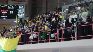 وشهدت المواجهة حضوراً جماهيرياً كبيراً ملأ جميع مقاعد صالة مدينة الأمير نايف بن عبدالعزيز الرياضية بالقطيف عن بكرة أبيها، حيث بدأت جماهير الفريقين بالتوافد إلى الصالة منذ وقت مبكر ، كما كانت جماهير الفريقين متفاعلةً مع أحداث المباراة، في مواجهة جماهيرية تعد الأبرز خلال هذا الموسم الرياضي، إذ أغلقت بوابات الصالة قبل بداية اللقاء بساعة، وبلغ عدد الحضور الجماهيري أكثر من 4200 متفرج.