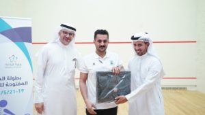 توج الدكتور عادل العقيلي رئيس الإتحاد السعودي للإسكواش عبدالعزيز أبو رقه لاعب اسكواش نادي الهلال بلقب بطولة المملكة المفتوحة والتي أقيمت منافساتها على ملاعب نادي الرياض خلال الفترة من 19-20 مايو الجاري بمشاركة أكثر من 48 لاعبآ .