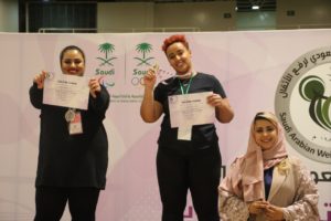 منافسات وزن 45 كلجم حققت غادة عبدالرحمن الطاسان المركز الأول وحلت رحمة عبدالمنعم الخواهر ثانياً وجاءات هاجر محمد الحربي بالمركز الثالث .