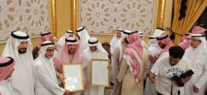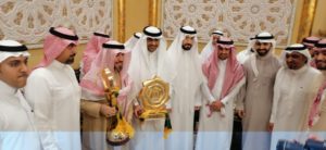 بعدها إحتفى بأبطال دوري يلو لكرة القدم الفريق الاول بنادي الخليج بسيهات