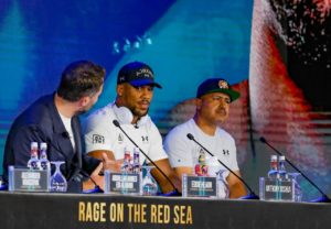 من جهته، عبّر البريطاني أنتوني جوشوا عن سعادته بالعودة للمملكة قائلاً: “أنا سعيد جدًا بالعودة إلى المملكة، والتي استعدت فيها اللقب قبل ثلاثة أعوام، خلال نزال الدرعية التاريخي، كما أنني أسعى جاهداً لاستعادتهِ مرةً أخرى، لكن الفوز والخسارة هما أمران طبيعيان في الرياضة بشكل عام والملاكمة بصورةٍ خاصة، ومن الضروري امتلاك العقلية الصحيحة لتقبُّل الخسارة، والتعلم والمحاولة مجدداً”.