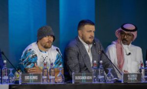 وقال الأوكراني أولكسندر أوسيك خلال المؤتمر: “سعيدٌ بالتواجد في المملكة، ونحن هنا لنمثّل بلدنا، كما أنني مسرورٌ بالتطوّر الرياضي الذي تشهده السعودية، وبالاستقبال الحافل الذي حظيت به أنا وفريقي، أنا لست من محبي الحديث الإعلامي، لكنني أؤكد لكم أن ملاكمتي هي التي ستتكلّم بالنيابة عني، وأنا فخور بتمثيل بلدي أوكرانيا في هذا المحفل العالمي، وأتطلّع لرؤية جميع محبّي الملاكمة يوم 20 أغسطس لحضور نزالٍ تاريخي”.